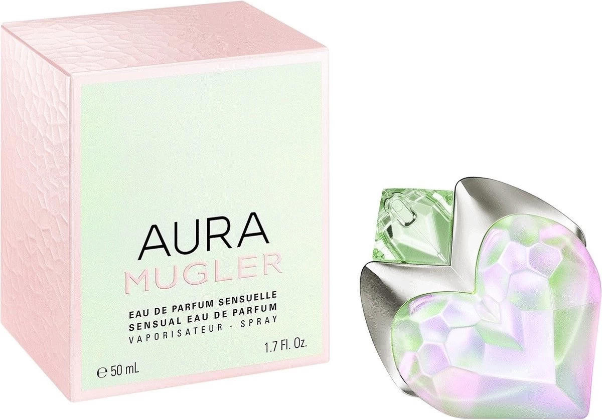 Mugler Aura Sensuelle Eau de Parfum is een sensuele en bloemige muskusgeur voor dames. In het hart van een mysterieus universum nodigt Mugler Aura Sensuelle je uit om in contact te komen met jezelf en je sensualiteit. Achter het Mugler parfum verschuilt een persoonlijkheid die vrouwelijker dan ooit is. Het Aura Sensuelle parfum opent met een verrassend duo van bloemen en bladeren die alle zintuigen laten ontwaken. Gardenia wordt gecombineerd met kaneel bladeren voor een krachtig en intens hart. Witte muskus en sandelhout vormen een zijdezachte en omhullende basis. De flacon van het Mugler Aura Sensuelle parfum heeft de herkenbare hartvorm van het Aura parfum, dit keer in een parelmoerachtige kleur met onweerstaanbare roze en groene reflecties. Ontdek de sensuele en bloemige geur van Mugler Aura Sensuelle Eau de Parfum nu zelf!